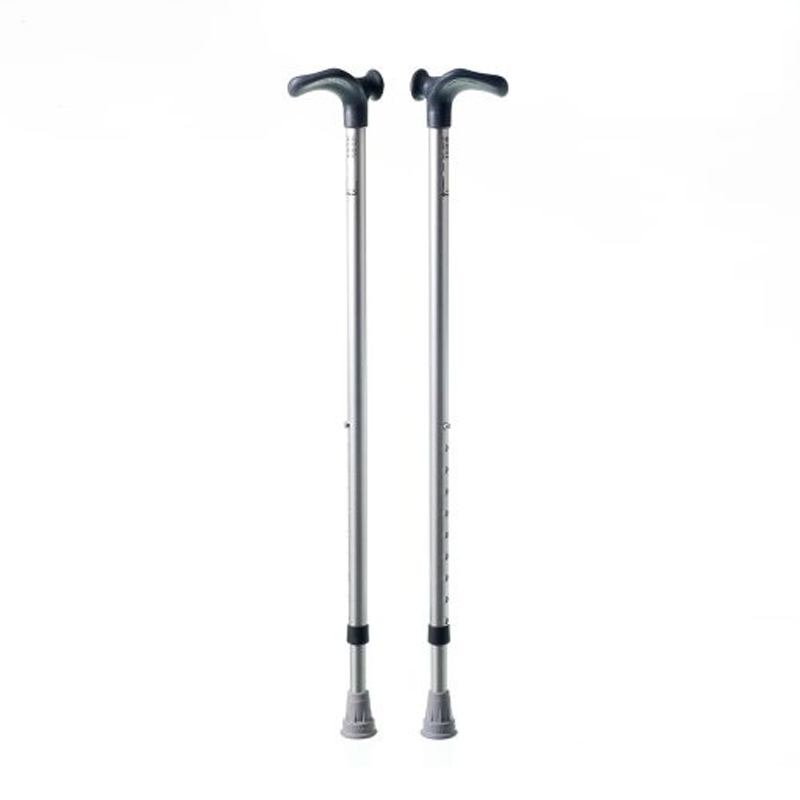 Stödkäpp tillverkad av aluminiumrör med anatomiskt format handtag i PP, som ger en god tryckfördelning och ett säkert grepp.