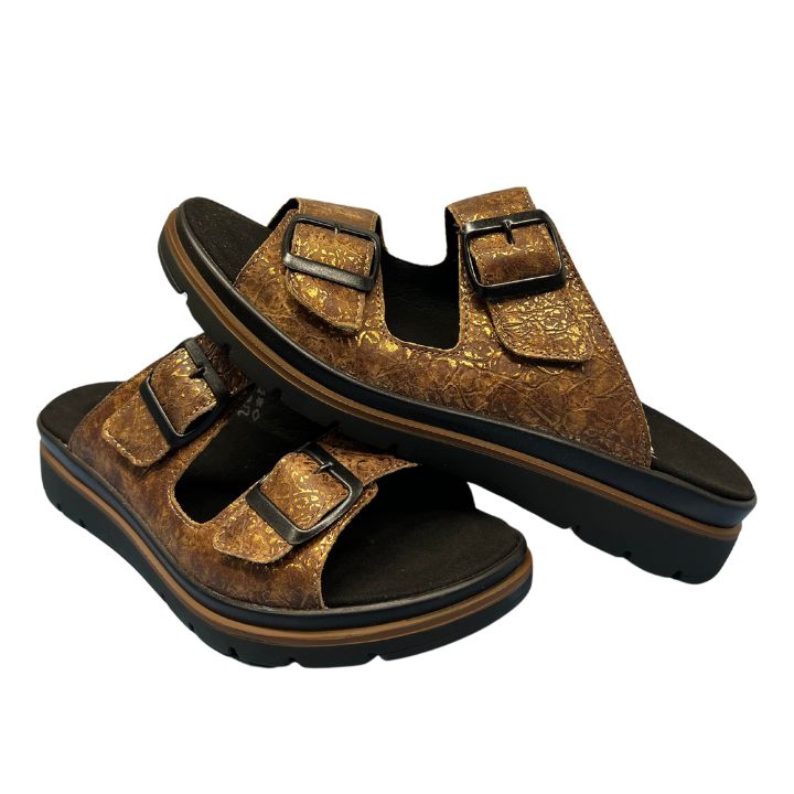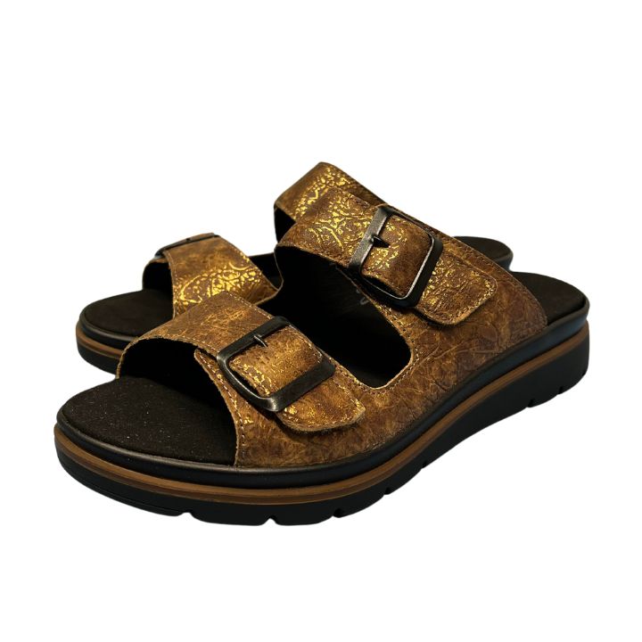 Fidelio Glory G½ Slip In är en stabil och lätt toffel från Fidelio. Toffeln har två remmar med kardborre som är lätt att reglera över foten och den har en skön komfort. Modellen är bred framtill i lästen så att fötterna och tårna får bra med plats och den har ett modernt och snyggt utseende. Innersulan är uttagbar för att man ska kunna använda individuella inlägg vid behov.